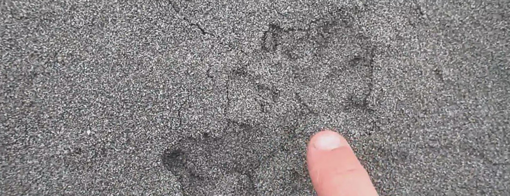 Front tracks left by this curious looking animal are roughly two inches wide. However, that can change with the size of the animal. The back footprints are slightly larger with a thumb that closely resembles a human thumb.